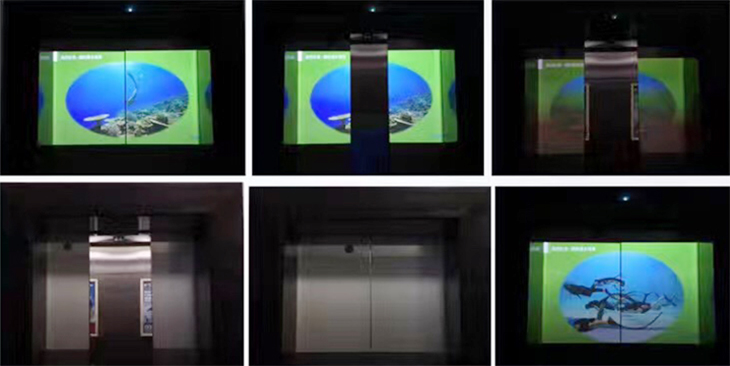 其通过特殊技术实现当电梯开启时广告机自动关闭,当电梯门关上时广告机自动开启。这就避免了在电梯内的人被投影机闪到眼睛造成不适。